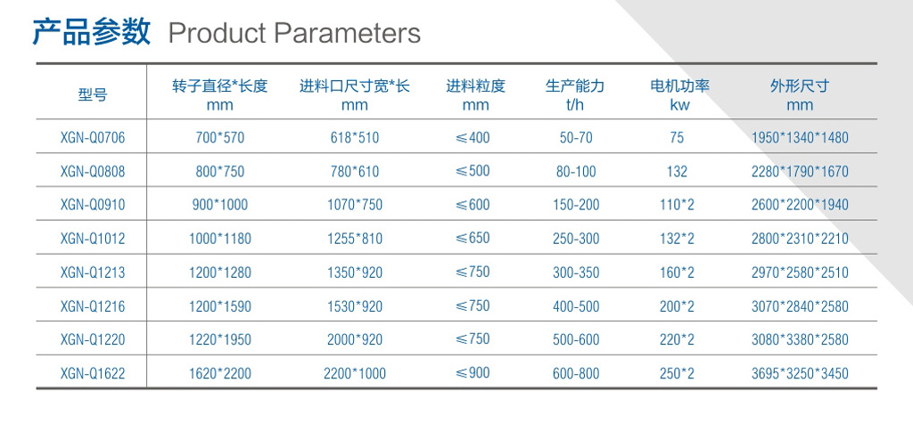 1.2重型反击式破碎机无蓖条设计(国家专利技术),有效避免了传统锤式破碎机易堵塞物料的现象,对于含水量高的湿性物料亦能破碎。